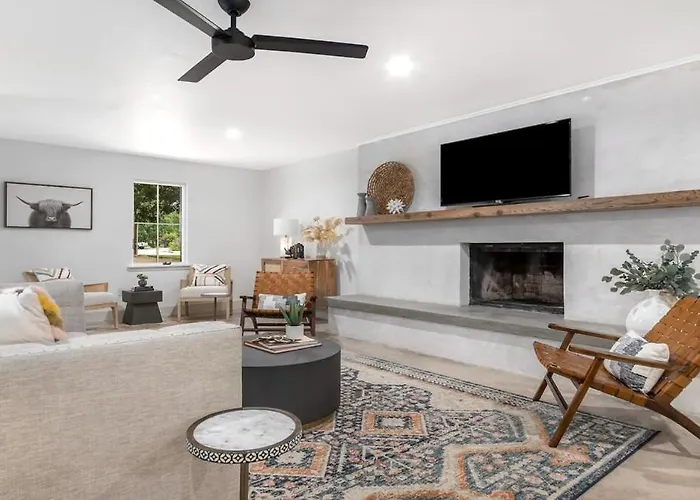 Villa Cava House Full Kitchen Plus Hot Tub de 112 m^2 est à 1 km du musée national de la guerre du Pacifique, et Fredericksburg central est à 15 minutes à pied. Une cafetière/théière, une TV et une climatisation sont proposés pendant votre séjour à villa.